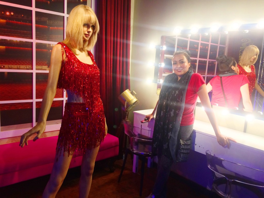 La primera vez que yo la vi de cerca, fue en el museo de cera Madame Tussauds de la isla de Sentosa – Singapur, que es una atracción turística imperdible en el Mirador Imbiah, donde únicamente se encuentran representadas verdaderas celebridades; en este caso, Taylor Swift está entre las estatuas de cera de la categoría de música, junto con Elvis Presley, Michael Jackson, Beyoncé, Madonna, Lady Gaga, Katy Perry, entre otros súper famosos, para que tengan una mejor idea de la notoriedad de esta bella artista. Mi adorada madre me preguntó quién es y por qué me tomo una foto con ella, así que haré un breve resumen de sus principales logros. Tal vez alguna vez pueda verla en persona.
