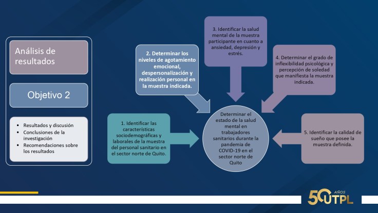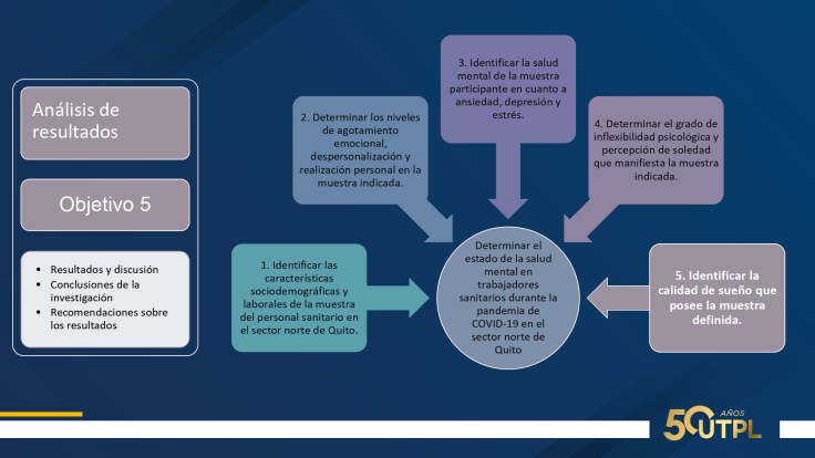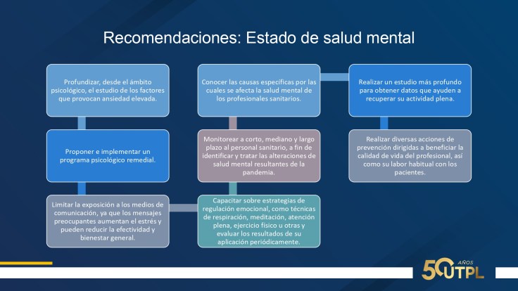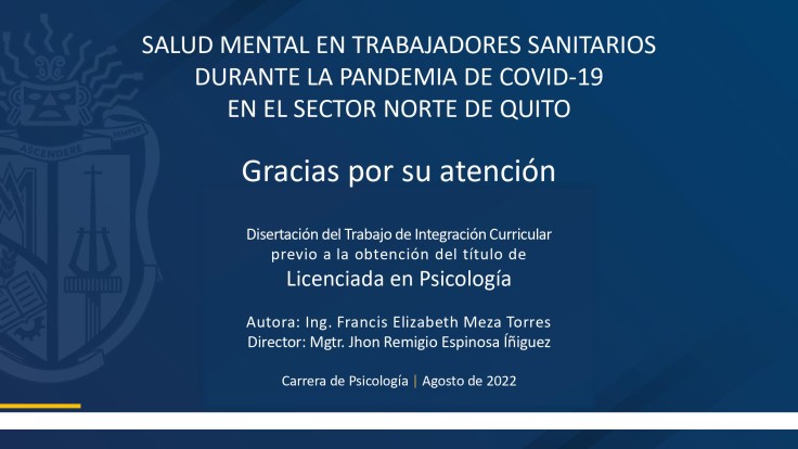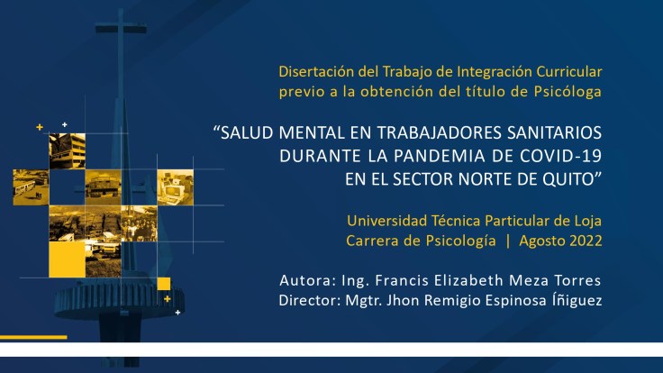 Esta investigación tiene como objetivo general determinar el estado de la salud mental en trabajadores sanitarios durante la pandemia de COVID-19 en el sector norte de Quito.